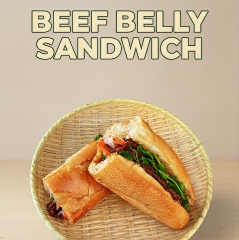 Tender marinated beef belly, pickled daikon, cucumber, and cilantro in a crispy baguette.